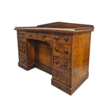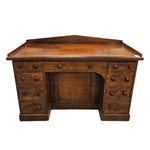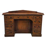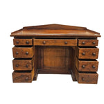 Step into history with this truly exceptional Antique 19th Century Pedestal Writing Desk. Representing fine quality craftsmanship from its era, this desk features a rich, deep mahogany tone that speaks of generations of history and distinguished use. The classic design is characterized by its large, comfortable writing surface and a practical arrangement of numerous drawers—eight drawers housed in twin pedestals, plus a central drawer, all outfitted with original-style turned pulls.