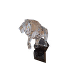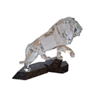 Faceted to perfection, the lion's form refracts light with jewel-like brilliance, capturing the essence of power in motion. With one paw raised and its gaze turned in alert poise, this piece evokes leadership, courage, and timeless nobility.