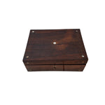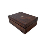 This isn't just a box; it's a little piece of history ready to hold your most precious secrets or treasured trinkets. It's a hand-carved rosewood treasure chest, with a rich, dark patina that tells a story of time and love. The clean lines and beautiful grain of the wood are highlighted by the simple, yet stunning, brass inlays that give it a touch of subtle elegance. It's the kind of piece you imagine a traveler keeping on their desk, filled with maps and mementos from distant lands. Whether you use it for jewelry, keepsakes, or simply as a beautiful decorative accent, this unique box brings a sense of quiet sophistication to any space. The lock and key work perfectly, so you can be sure your things are safe and sound.