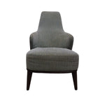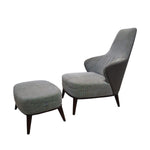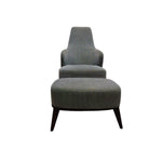 This isn't just a chair; it's an invitation to unwind. Imagine sinking into this beautifully textured, soft grey armchair after a long day. It’s got a lovely high back that really supports you, and the arms are perfectly placed for comfort. The matching ottoman is the cherry on top, making this the perfect little reading nook or a cozy spot to enjoy your morning coffee. The fabric has this subtle, tweed-like pattern that gives it a really sophisticated feel, and the dark wood legs are tapered, giving the whole piece a chic, contemporary lift. It’s in fantastic shape, ready for its next chapter in a stylish home.