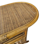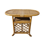 Infuse your home with the laid-back luxury of the tropics with this exceptional Mid-Century style rattan table. This piece is a captivating blend of function and exquisite craftsmanship, featuring a smooth, oval top finished with finely woven cane that offers a naturally textured and durable surface. Below, the base is detailed with a striking, large-scale open diamond lattice design, instantly elevating the piece from simple furniture to a statement accessory. The warm, sun-kissed honey tone of the rattan gives it a beautiful vintage patina. Perfect as a small dining or breakfast table in a sunroom, a chic desk for a cozy home office, or a versatile accent table in a living room. The integrated lower shelf provides practical storage or display space. Rattan is celebrated for its strength and enduring charm, requiring only a light dusting or occasional wipe with a dry cloth to maintain its allure.