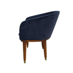 Invest in lasting quality and signature style with this Pottery Barn Navy Velvet Club Accent Chair. This piece reflects the brand's commitment to comfortable, timeless design, instantly elevating your living space. Upholstered in a plush, luxurious navy velvet, the fabric introduces a beautiful depth of color and inviting texture, making it an immediate focal point.