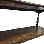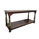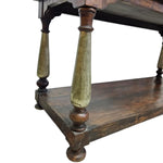 Bring a touch of timeless, farmhouse-inspired elegance to your home with this stunning handcrafted console table. Meticulously designed to blend rustic charm with structural sophistication, this piece features a rich, dark wood grain finish on the tabletop and lower shelf, beautifully contrasted by distressed, sage-toned turned legs. The intricate woodwork on the balustrade legs adds a layer of vintage character, making it a perfect focal point for an entryway, hallway, or behind a sofa.