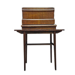 The table itself is crafted with simple, clean lines and sturdy tapered legs, providing a stable foundation for the heavy cast-iron machine. This piece embodies a slower, more intentional lifestyle, making it a perfect conversation starter for a creative studio, a vintage-inspired living room, or a boutique display.