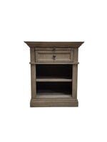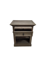 Crafted from solid wood, it features a beautiful weathered finish that highlights the natural grain and adds so much character. It's got that wonderful, lived-in feel that truly makes a house a home. This clever design includes a convenient pull-out tray – absolutely perfect for your morning coffee or that late-night book. Below, a spacious drawer offers discreet storage for all your essentials, keeping your bedside tidy. And, to top it off, two open shelves provide easy access for books, decor, or even a cozy basket.