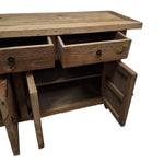 Reclaimed Wood Sideboard is a beautiful piece that brings the warmth and character of a country estate into your home. It is made of stunning, naturally weathered timber where every knot, grain and subtle imperfection would tell its own little story, thus, this piece is characterized by a sense of history and authenticity like no other. The generously proportioned top together with the rustic finish immediately set the tone in any space where you might want to put it as a buffet in the dining area, as an entertainment console in the living room, or as a perfect storage piece in a wide hallway.