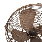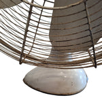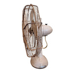 Step into a bygone era with this beautifully aged electric fan, a relic of vintage craftsmanship. Featuring four sturdy metal blades encased in a classic wire cage, its rounded base and industrial silhouette evoke the charm of retro design and the reliability of old-world engineering. The visible wear tells a story of summers past—each scuff a testament to its enduring service.