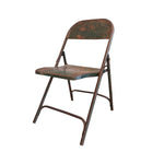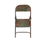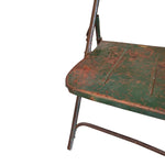 Bring a piece of authentic industrial history into your home with this wonderfully aged folding chair. This isn't just seating; it's a character piece showcasing a beautifully distressed patina, featuring original rusty tones and remnants of an aged green finish that tell a story of use and time. The classic vintage metal construction offers both durability and undeniable visual interest.