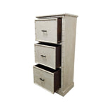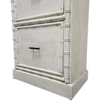 Breathe fresh life into your home with this charming coastal-inspired chest of drawers. Featuring a refined off-white finish, this piece is beautifully accented with intricate faux bamboo detailing that wraps around the frame and drawer fronts, offering a subtle nod to tropical elegance and high-end Palm Beach style. The three generously sized drawers provide ample storage for linens, clothing, or household essentials, each finished with a sleek, dark horizontal pull for a modern touch of contrast.