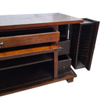 Step into a classic aesthetic with this lovely, pre-loved television cabinet, a piece that brings a sense of grounded warmth to any living area. The rich, dark wood grain is the star here, offering a timeless appeal that feels both sophisticated and welcoming. It's got plenty of space for your media setup, with two generous cabinets and a couple of drawers tucked neatly above. This piece isn't just about looks; it’s built to be practical, keeping all your electronics and clutter tidied away. The overall vibe is that of a vintage piece, with a sturdy and robust build that suggests it has many more years of life to give. It’s a wonderful find for anyone in Dubai looking for something with a bit of history and character.