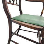 This stunning antique armchair is a masterclass in traditional British craftsmanship, celebrating the harmonious marriage of two iconic hardwoods. The chair features a deeply figured solid Elm seat, renowned for its distinctive, wild grain patterns that seem to flow like water. Supporting this is a robust Oak frame, offering the incredible strength and durability that has allowed this piece to survive for generations.