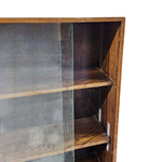 Bring a touch of mid-century charm and practical elegance to your home with this beautiful vintage oak bookcase. Designed with a slim profile that makes it perfect for narrow hallways, alcoves, or cozy living spaces, this piece offers a sophisticated way to display your favorite treasures. The warm, natural grain of the oak frame provides a sturdy and organic foundation, while the smooth-sliding glass doors protect your books, ceramics, or collectibles from dust without hiding them from view.