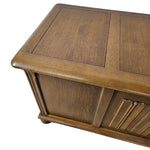 Infuse your home with the enduring charm of traditional British craftsmanship with this stunning Vintage Priory Oak blanket box. This piece features the iconic "linen fold" hand-carved detailing on the central panel, a classic motif that evokes a sense of history and refined rustic elegance. Built from solid, high-quality oak with a warm, honey-toned finish, this chest showcases a beautiful natural grain that has only grown more distinguished with time.