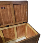 As versatile as it is beautiful, this chest offers generous internal storage, making it the perfect sanctuary for bulky linens, heirloom quilts, or seasonal wardrobe pieces. Beyond its storage capabilities, its sturdy flat top and low profile allow it to function beautifully as a statement coffee table in a cozy living room or a charming end-of-bed bench.